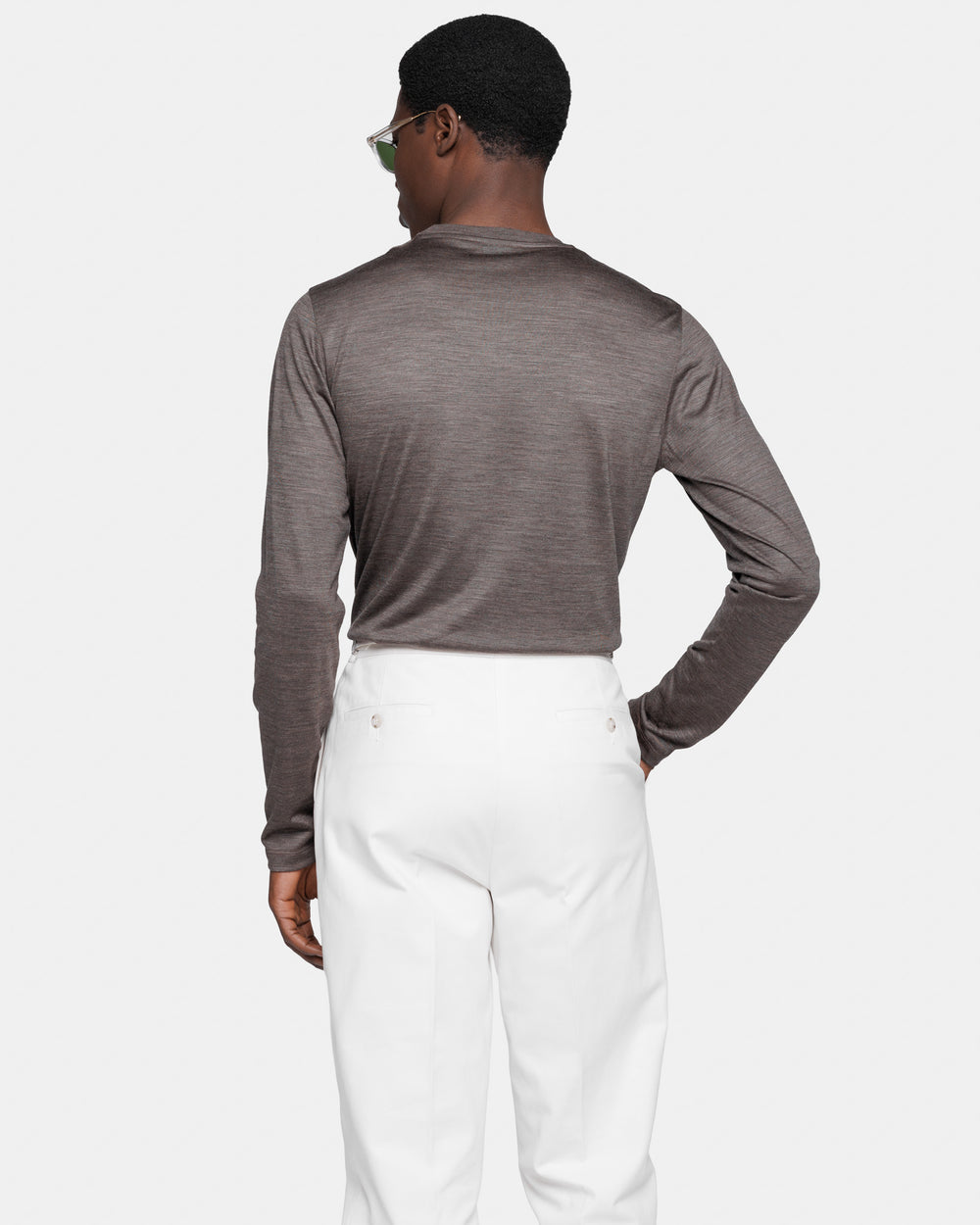 It is a valuable staple of the contemporary wardrobe. This piece reflects Filatori’s commitment to excellence, characterized by meticulous attention to finishing and detail. Visible seams under the neckline and around the shoulders add an extra touch of tailoring. The neckline is finished with a 1.8 cm high rib knit that further enhances the brilliance of the yarn.