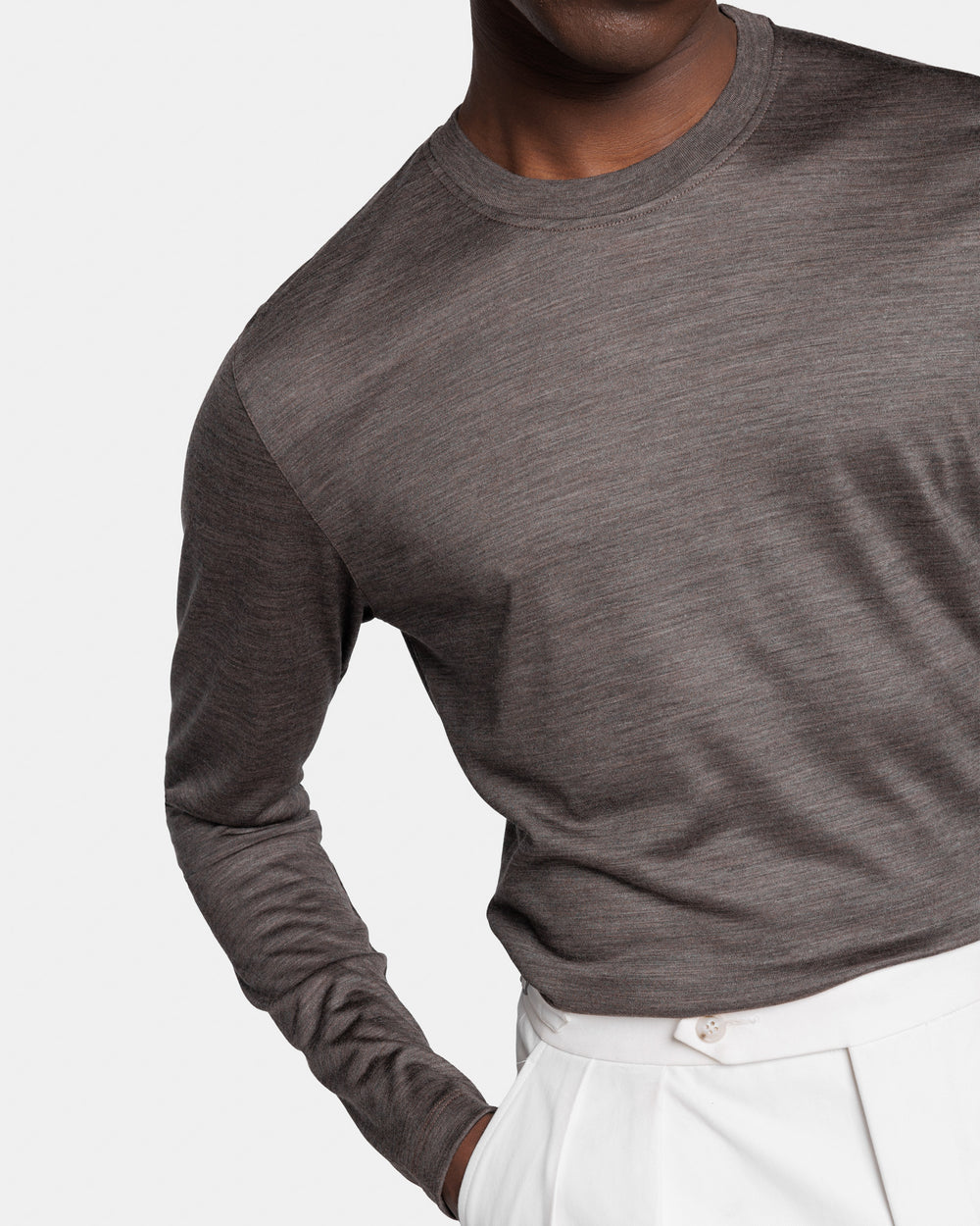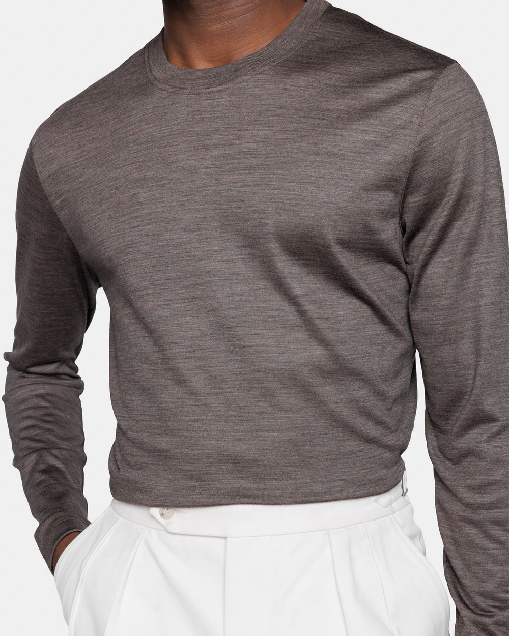 Brown Tech Long Sleeve T-Shirt in Extrafine Merino Wool| Filatori