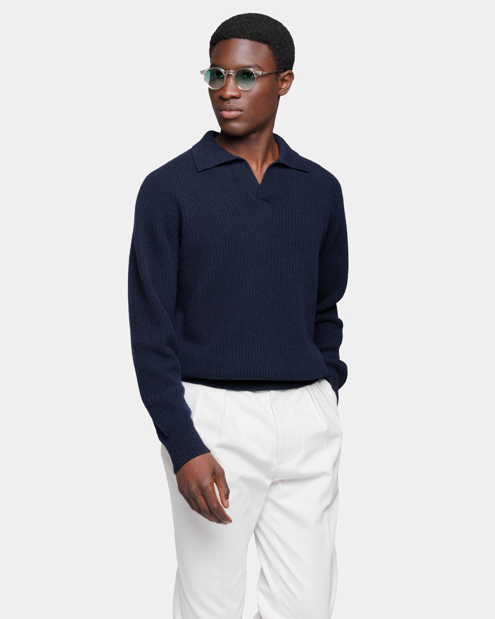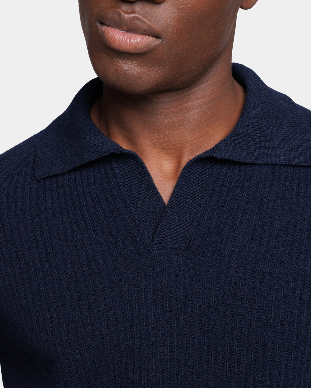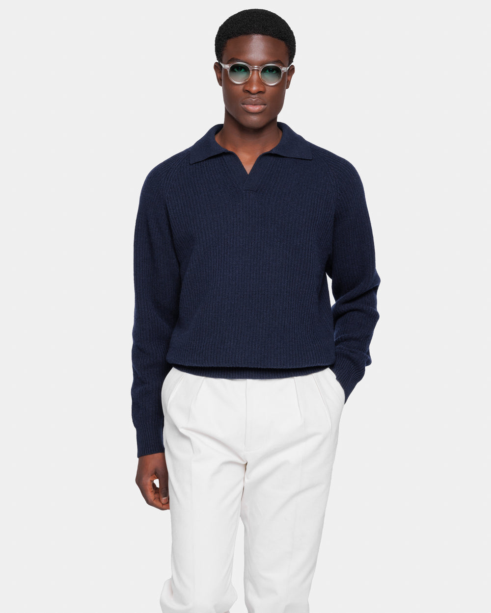 Maglia manica lunga Polo senza bottoni Blu Lana Ultra-Soft Super 100's| Filatori
