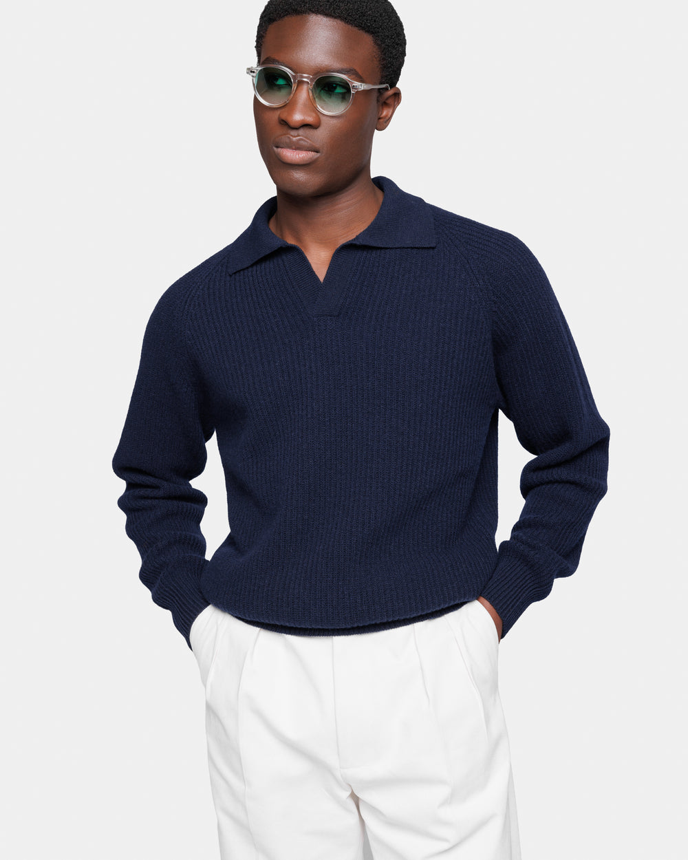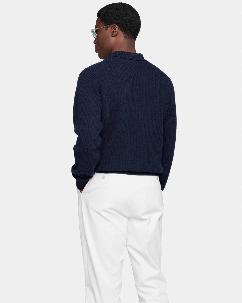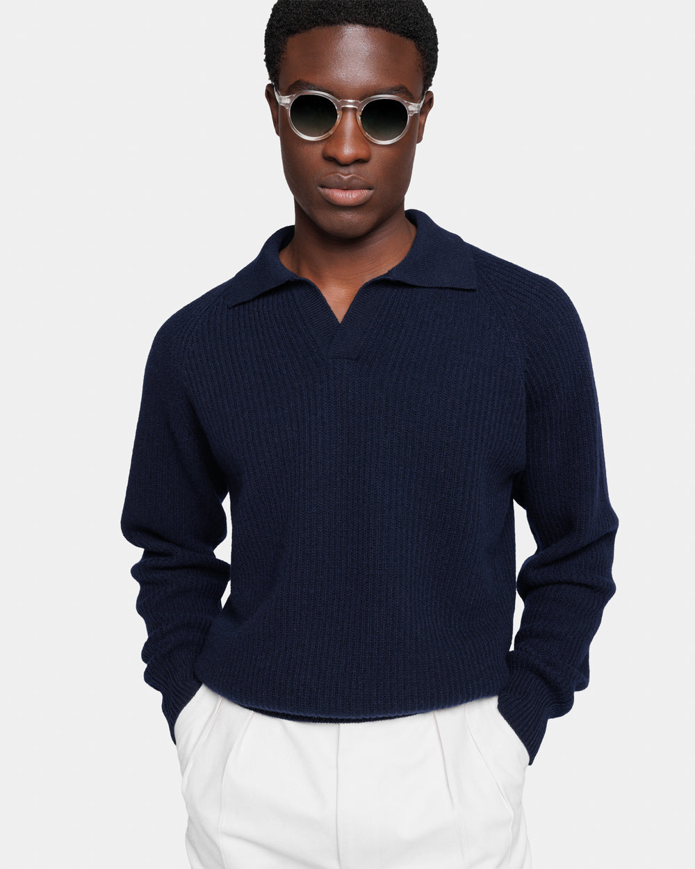Maglia manica lunga Polo senza bottoni Blu Lana Ultra-Soft Super 100's| Filatori