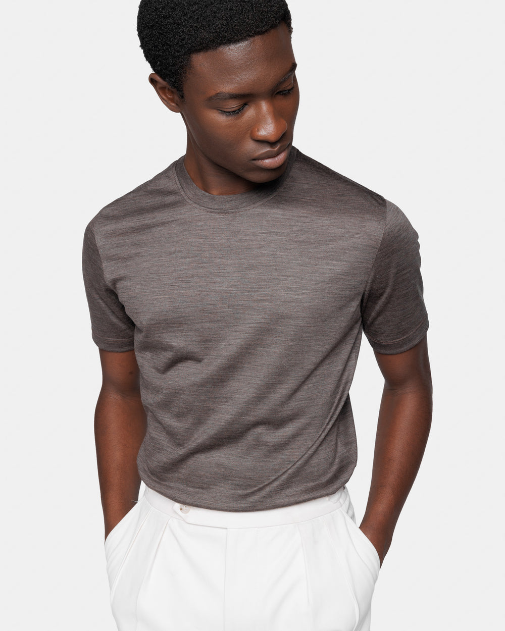 T shirt manica corta tech tinta unita Brown Lana Merino Extrafine | Filatori