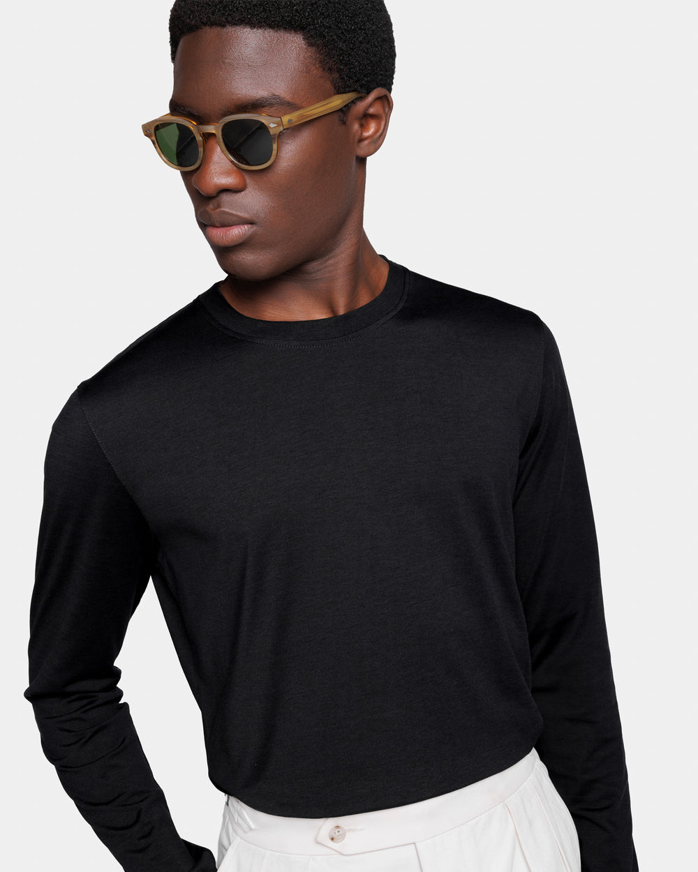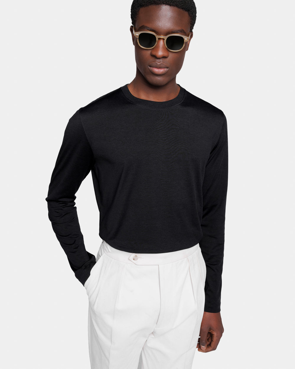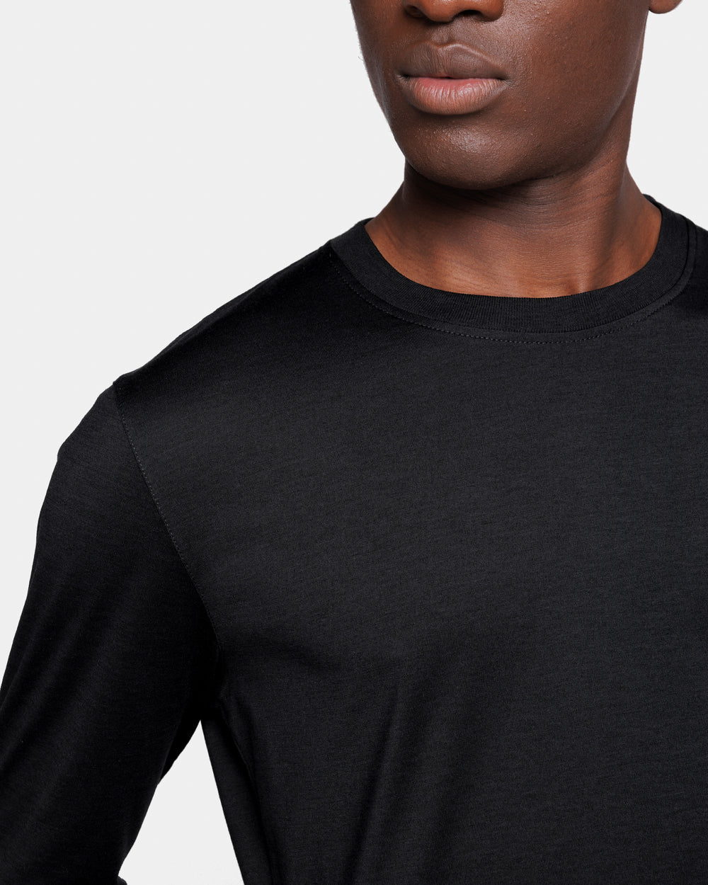 T shirt manica lunga soft tinta unita Nera Seta Cotone | Filatori