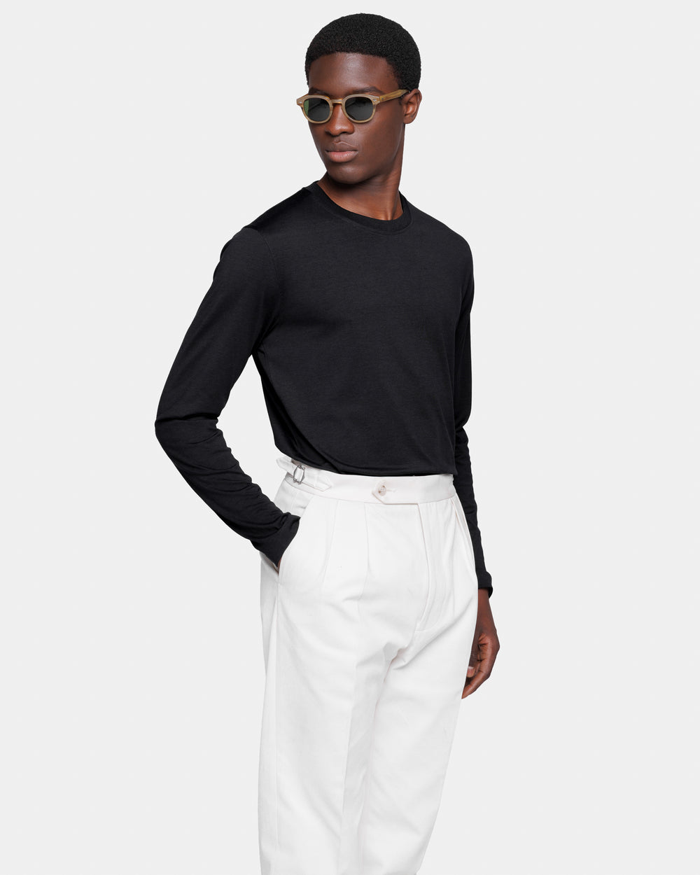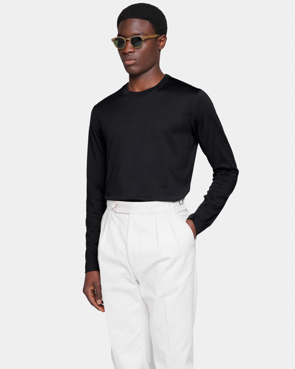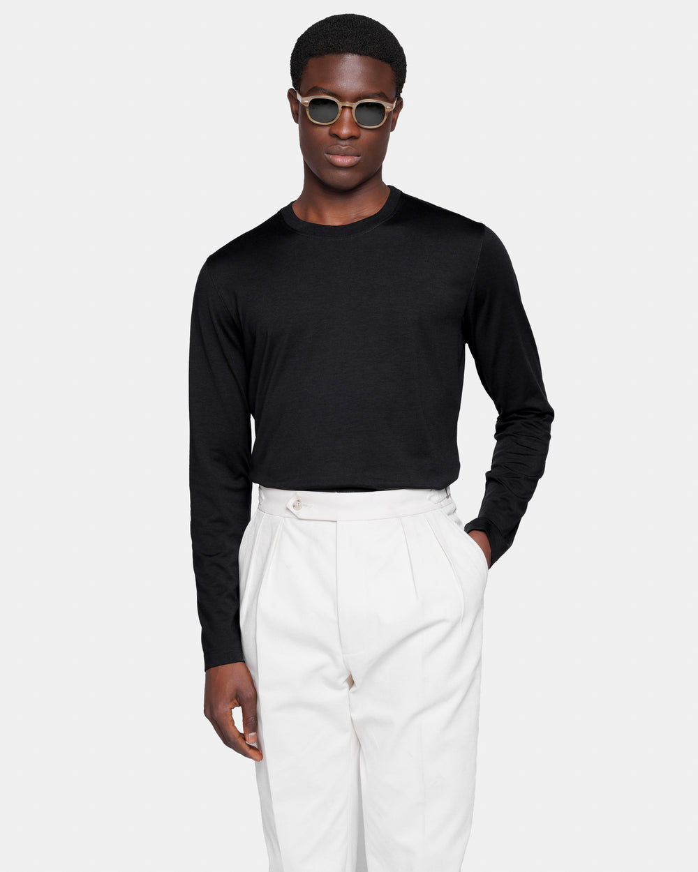 T shirt manica lunga soft tinta unita Nera Seta Cotone | Filatori