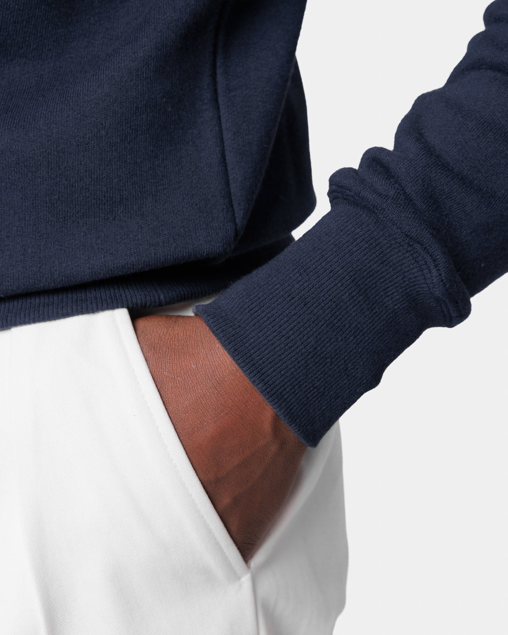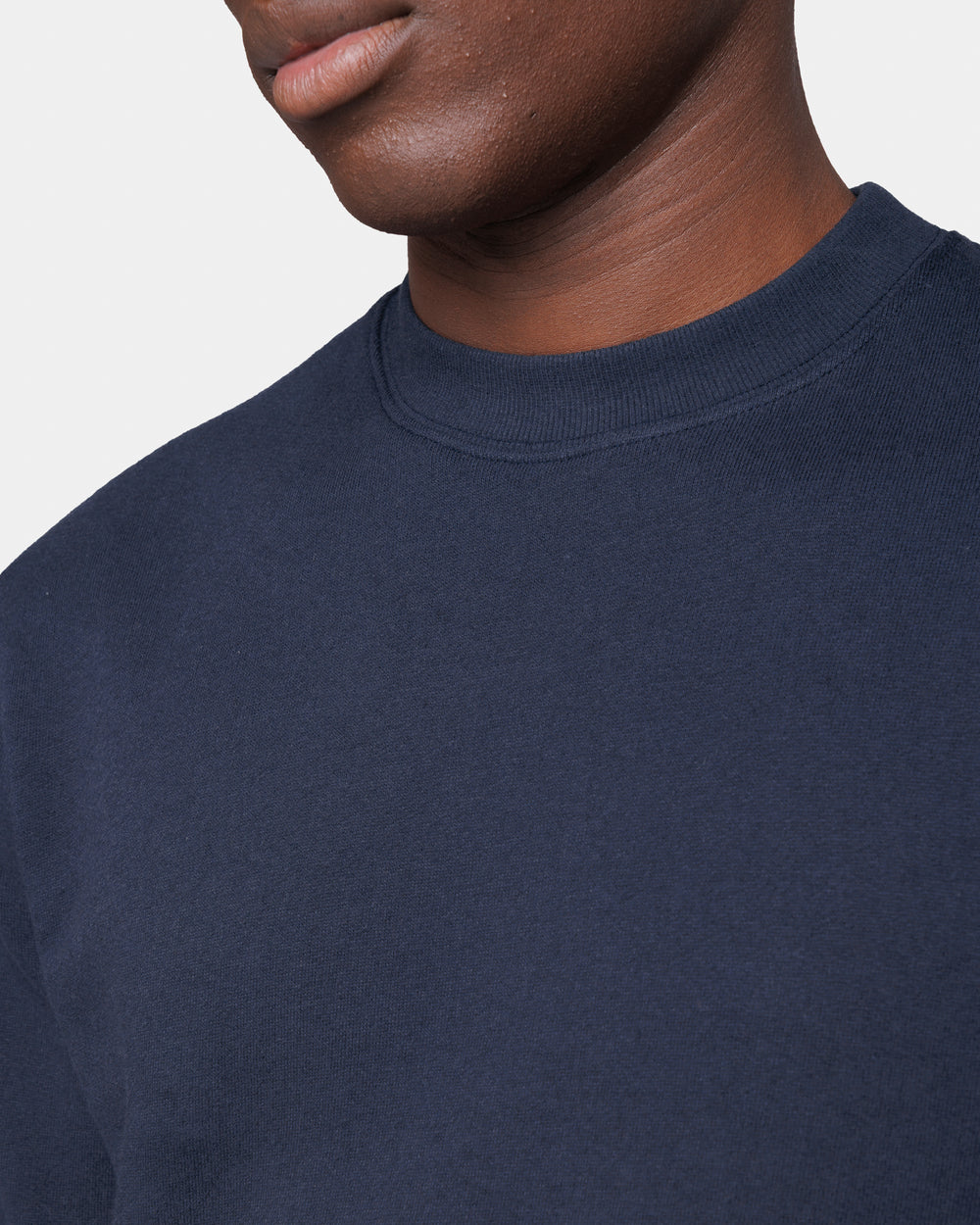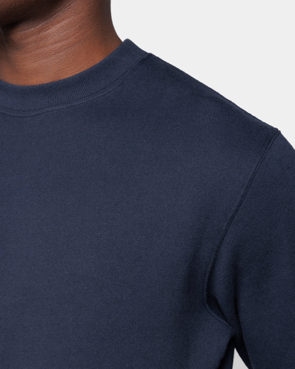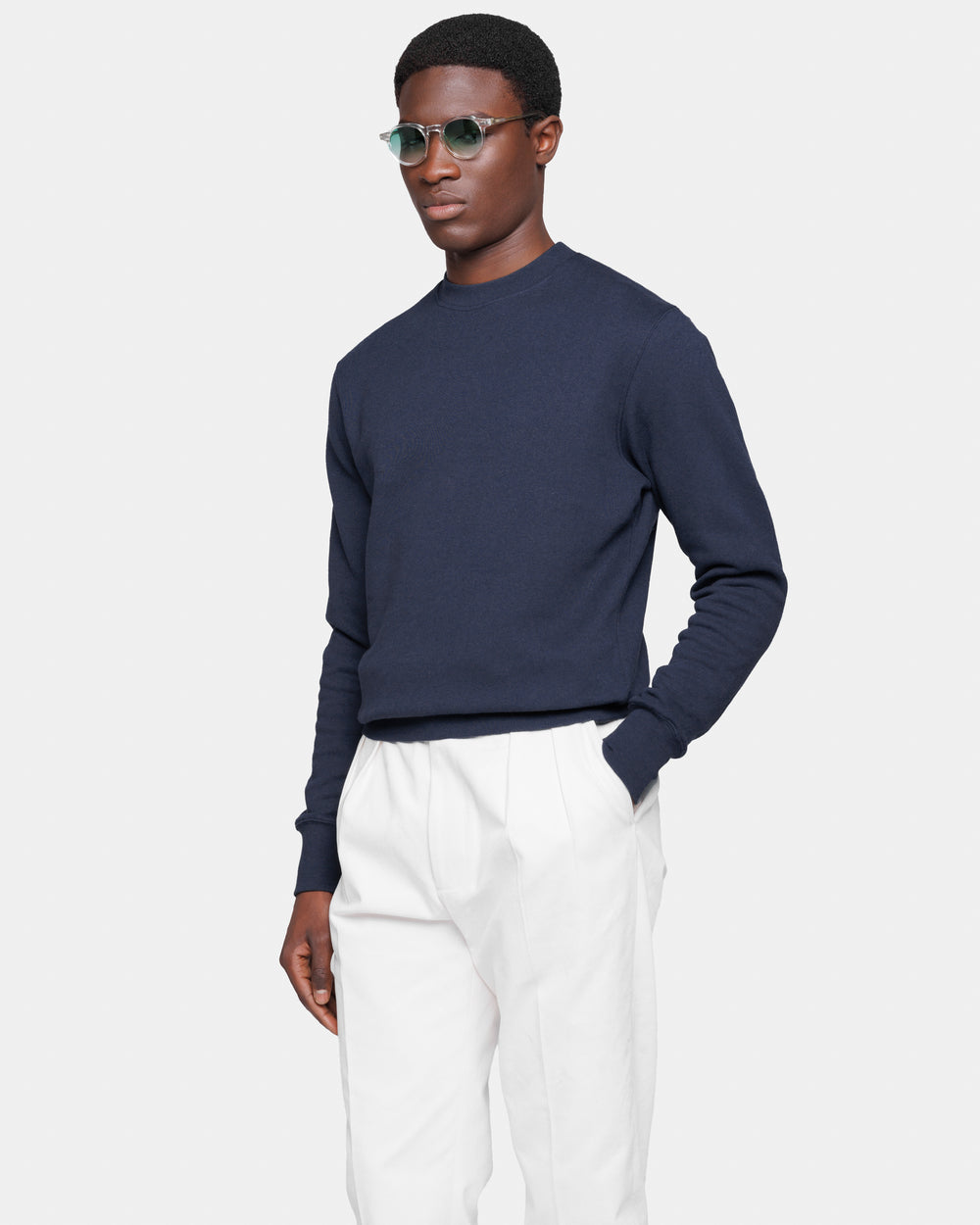 A crewneck sweatshirt is an excellent foundation for a relaxed style.
