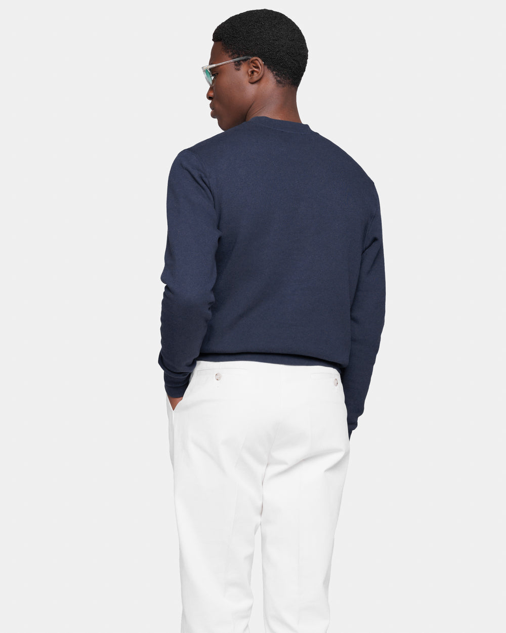 Crafted from Cashcott jersey fabric dyed yarn 95% cotton 30/1 - 5% Cashmere, by the Italian weaver Maglificio Maggia, with a weight of 280 g/sqm, it is extra soft and luxurious to the touch, perfect for elevating your casual look. This garment is the result of Filatori's loyalty to the pursuit of excellence and is characterized by high attention to finishes and details. The visible stitching under the neckline and on the shoulder lend a touch of additional tailoring to the garment. The 2.2 cm high ribbed neckline in dyed yarn Cotton - Cashmere imparts exceptional brilliance to the garment.