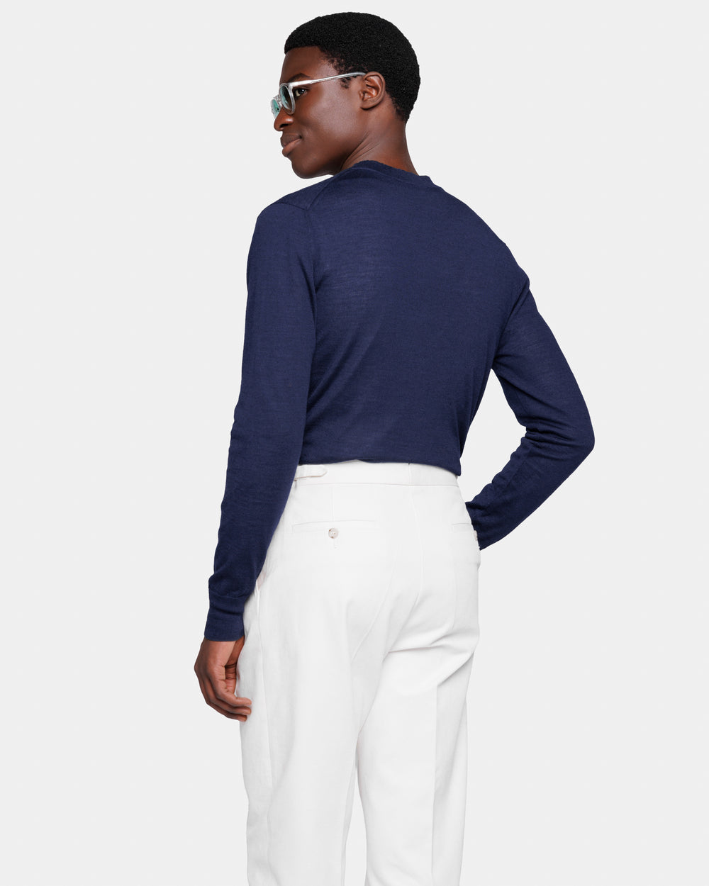 The luxurious blend of Extrafine Merino Wool and Silk from Filatori gives the knit a refined appearance, where the precious mix highlights the silk’s natural brilliance. This natural knit offers an incredibly soft touch against the skin, transforming a simple design into a luxurious garment.