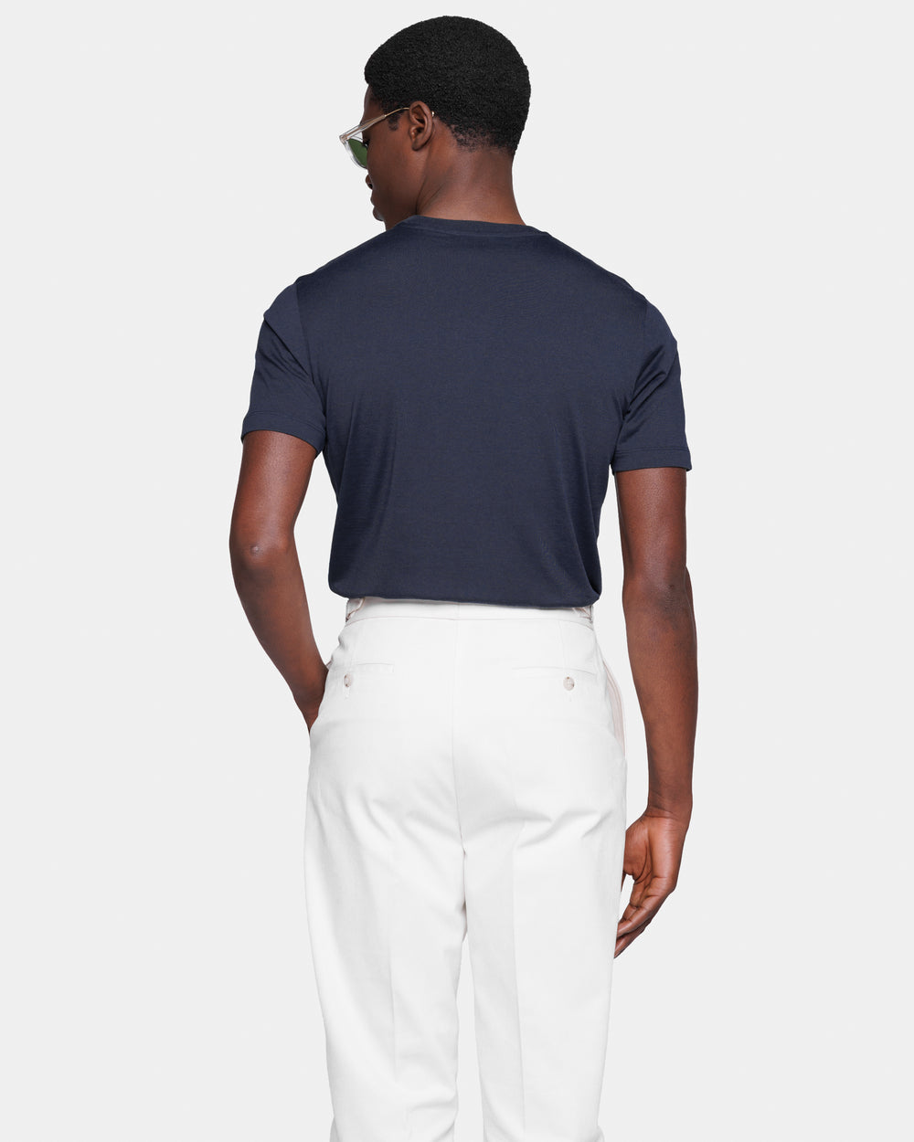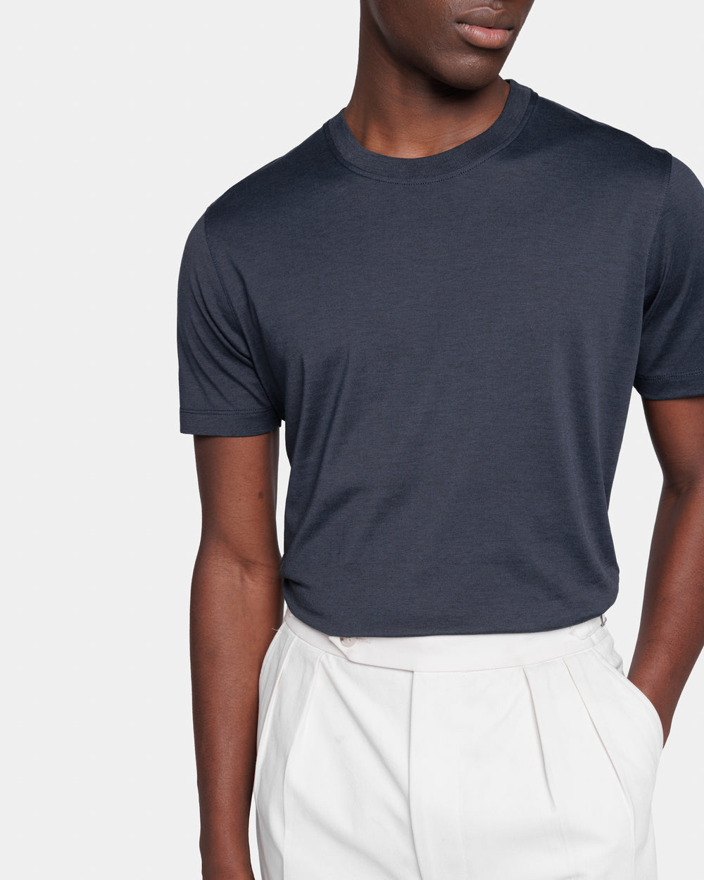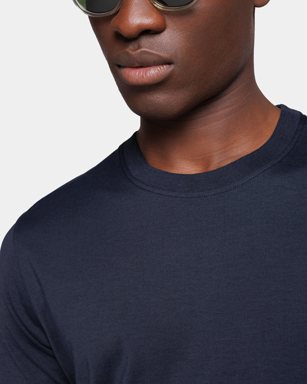 Navy Blue Soft Short Sleeve T-Shirt Silk Cotton | Filatori
